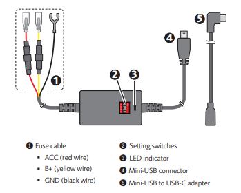 It comes with a USB-C power adapter to suit selected MiVue™ Dash Cams.