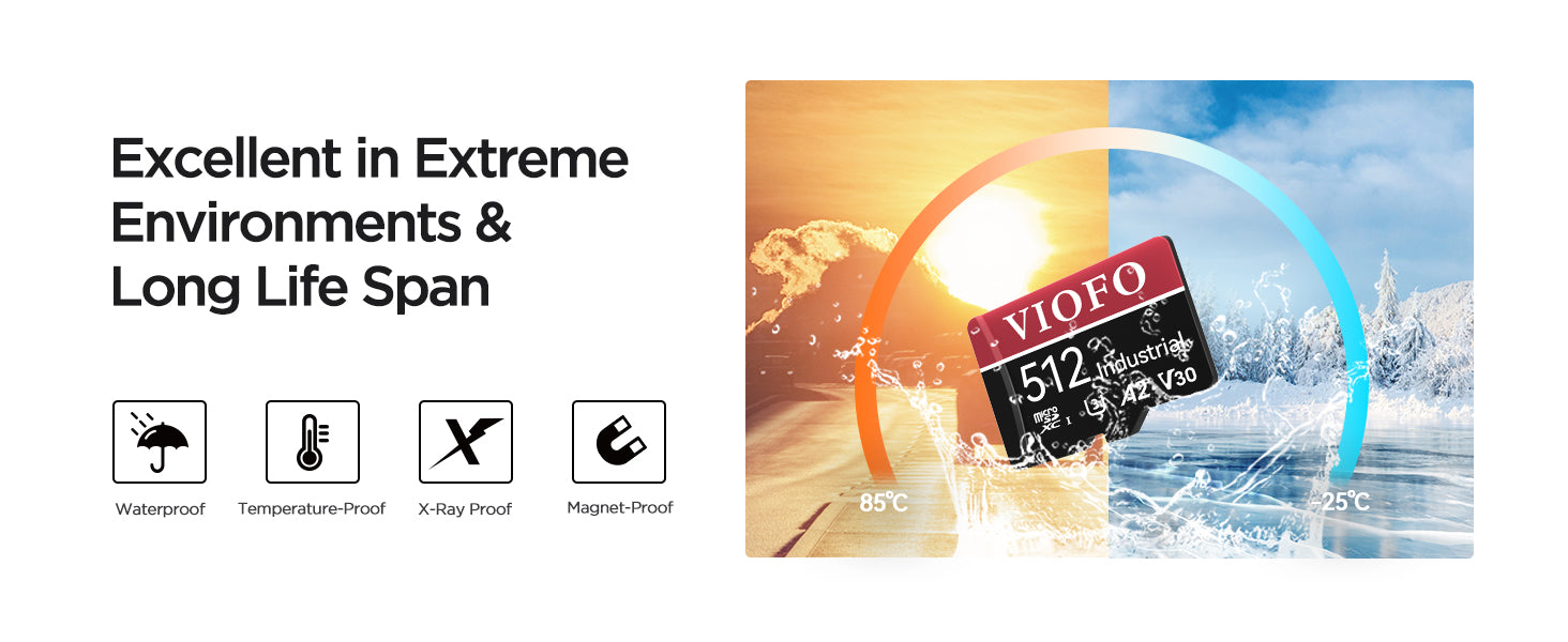 VIOFO industrial high endurance microSD cards, optimized for dash cam recording, give greater assurances around compatibility and VIOFO have tested the long-life durability.